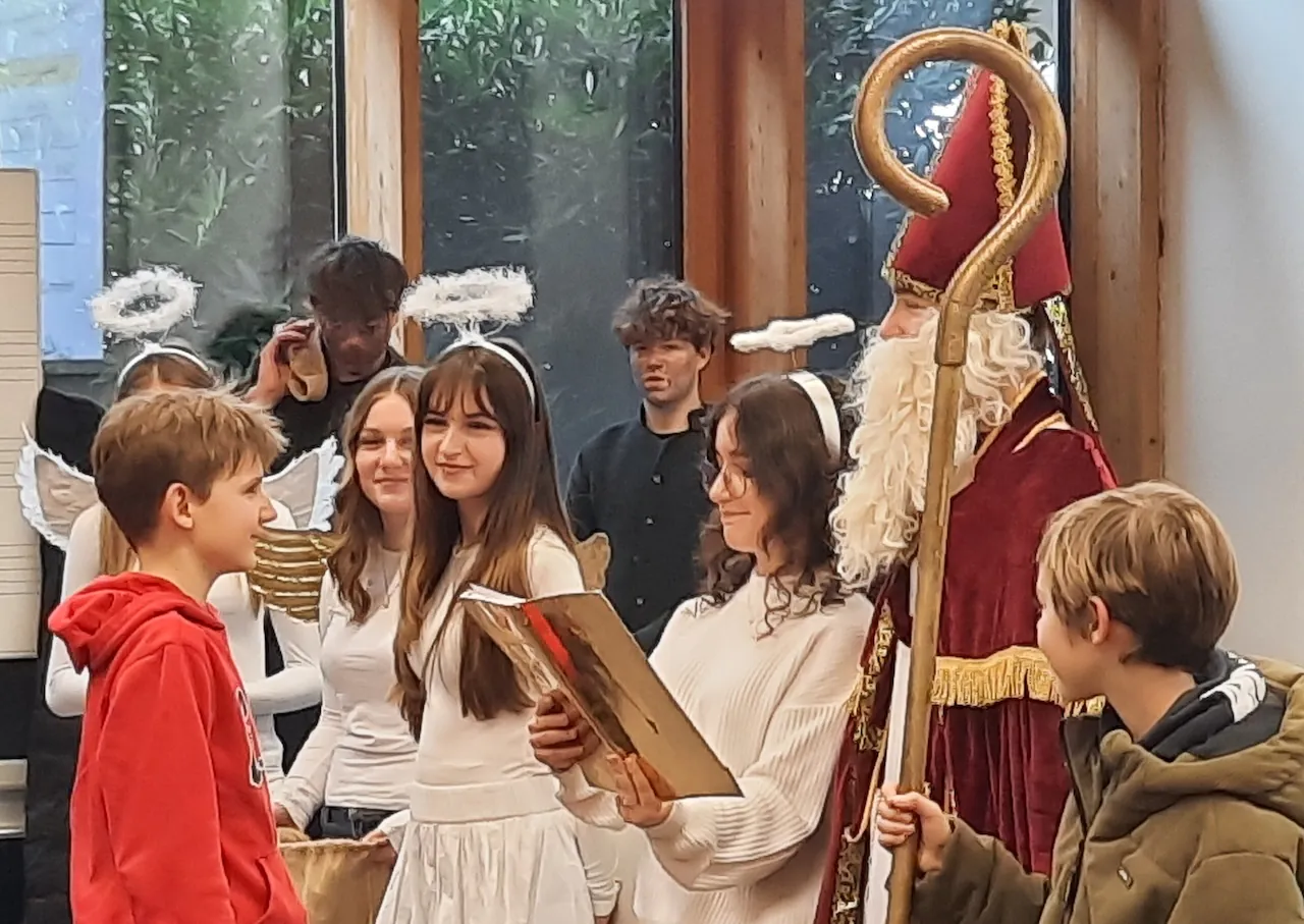 Am 5. Dezember herrschte in den Gängen unserer Schule eine aufgeregte Stimmung. Wie es die gute Tradition verlangt, stattete der Heilige Nikolaus unseren jüngsten Schülerinnen und Schülern der 5. Jahrgangsstufe einen Besuch ab.