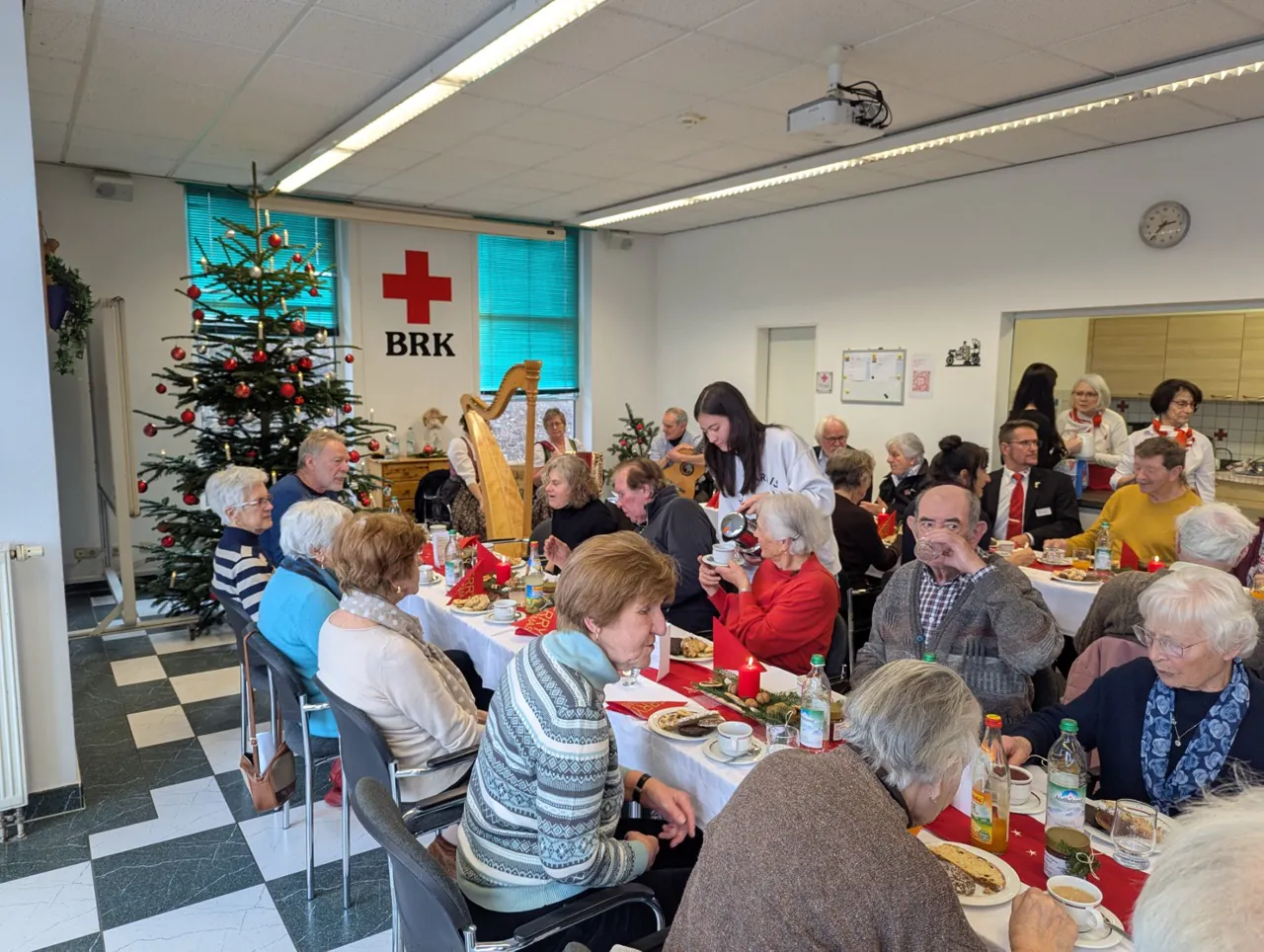 Am 08.12. besuchten wir, das P-Seminar „Soziales Engagement in unserer Heimat“, die Seniorenrunde, die vom Roten Kreuz organisiert wird und in dessen Räumlichkeiten stattfindet. Dieses Mal stand das Treffen ganz im Zeichen von Weihnachten. Bereits am Freitag zuvor bereiteten wir uns mit selbst gebackenen Plätzchen und dem Einüben von Weihnachtsliedern auf den Nachmittag vor. Sowohl die Plätzchen als auch unsere – zugegebenermaßen nicht ganz engelsgleiche – Gesangseinlage kamen bei den Senioren sehr gut an. Besonders treffend fasste ein Besucher seine Eindrücke mit den Worten zusammen: „Es war so schön, weil es eben nicht perfekt war.“ Im Laufe des Nachmittags entwickelten sich viele anregende und interessante Gespräche. Bei Kaffee und Glühwein tauschten wir uns über unterschiedlichste Themen aus, und die Senioren teilten mit uns spannende Geschichten aus ihrem Alltag sowie aus ihrer Vergangenheit. Insgesamt war es für uns ein sehr bereichernder und gelungener Nachmittag.